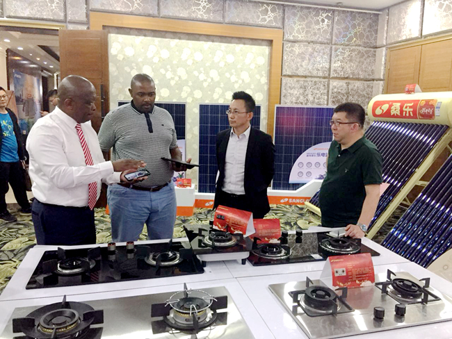 After the visit, South African customers came to the Hebei order meeting site again. The deputy general manager of the group Mr. Feng Lei introduced the company's recent development and future strategic concept to South African customers, and led them to visit the Sangle exhibition hall of Hebei conference. There are a variety of products such as solar thermal, photovoltaic and diversified kitchen appliances. Sangle products attracted foreign customers to take photos frequently,and said that they would continue to strengthen cooperation with Sangle.