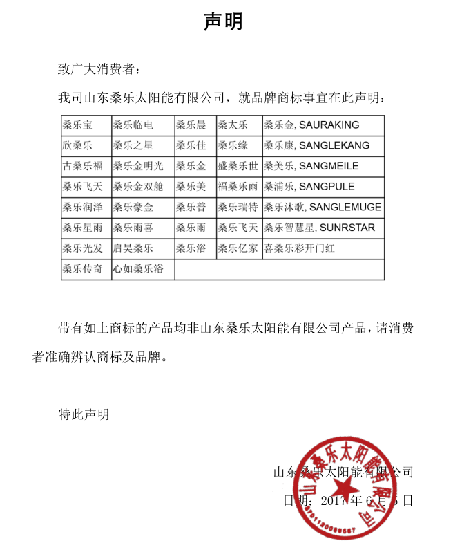 關(guān)于桑樂(lè)商標(biāo)及產(chǎn)品選擇的聲明