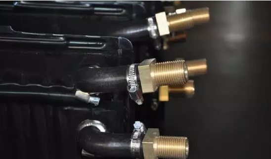 IMSIA一行在現(xiàn)場看到,全流道不銹鋼平板太陽能集熱器傳熱介質(zhì)的進(jìn)、出口在均在背部同側(cè)探出,出口與四棱純銅螺紋件用特種橡膠管相連,該項(xiàng)創(chuàng)新杜絕了安裝作業(yè)中扳手卡不住、接口旋不緊或者扭壞焊口的現(xiàn)象發(fā)生。此外,背部接口的設(shè)置更方便整機(jī)陣列整體封裝處理,在大型工程中應(yīng)用優(yōu)勢凸顯。