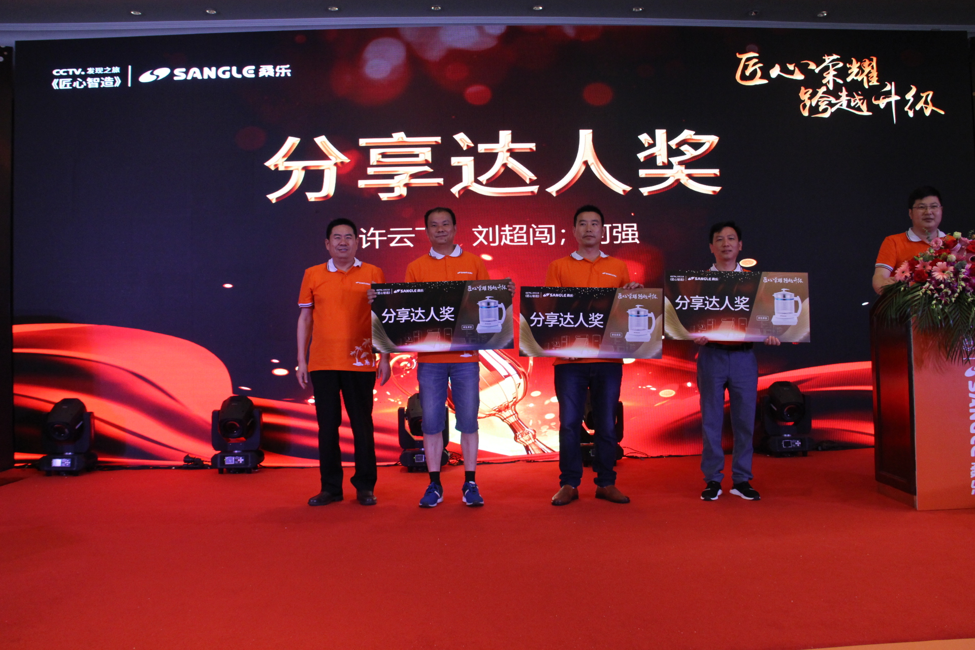 分享結(jié)束后,張興東為分享嘉賓頒發(fā)了“分享達(dá)人獎”,感謝他們在銷售經(jīng)營、售后服務(wù)、市場推廣等方面給大家?guī)淼姆窒砗徒瘘c子。