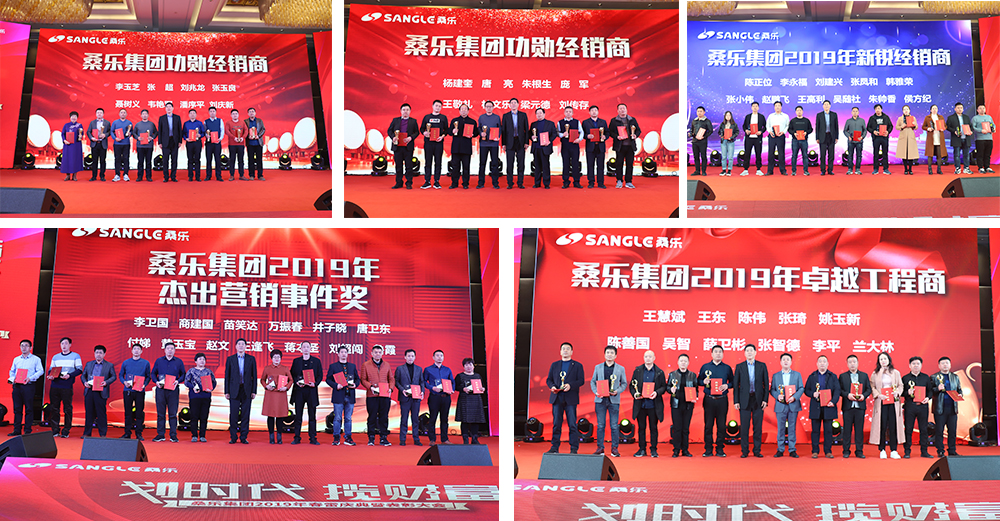 表彰慶典表彰作為本次會(huì)議的主旋律之一,從“桑樂(lè)集團(tuán)功勛經(jīng)銷(xiāo)商表彰”拉開(kāi)序幕,桑樂(lè)歷經(jīng)輝煌后負(fù)重前行再創(chuàng)佳績(jī),離不開(kāi)多年以來(lái)對(duì)桑樂(lè)事業(yè)一直精益求精勤奮耕耘的優(yōu)秀合作伙伴們。董事長(zhǎng)為加盟超過(guò)20年且業(yè)績(jī)貢獻(xiàn)突出的經(jīng)銷(xiāo)商代表頒發(fā)了功勛經(jīng)銷(xiāo)商獎(jiǎng),現(xiàn)場(chǎng)掌聲雷動(dòng)。隨后董事長(zhǎng)頒發(fā)了營(yíng)銷(xiāo)事件獎(jiǎng),從創(chuàng)新到創(chuàng)舉,超越自我、銳意進(jìn)取的新銳經(jīng)銷(xiāo)商獎(jiǎng),用匠心兌現(xiàn)品質(zhì)承諾的工程經(jīng)銷(xiāo)商獎(jiǎng),以及桑樂(lè)真空管、廚電、速熱熱水器銷(xiāo)售冠軍獎(jiǎng)。繼而,會(huì)上還為達(dá)成2019年簽約任務(wù)的經(jīng)銷(xiāo)商嘉賓頒發(fā)了2019年簽約達(dá)成表彰,除了簽約返利的兌現(xiàn),董事長(zhǎng)還向完成鉆石、金牌、銀牌、優(yōu)秀等各等級(jí)的簽約經(jīng)銷(xiāo)商頒發(fā)了獎(jiǎng)杯、證書(shū)和獎(jiǎng)品。 與會(huì)經(jīng)銷(xiāo)商和集團(tuán)員工為獲獎(jiǎng)嘉賓送上了陣陣掌聲和祝賀。累計(jì)7大項(xiàng)近200人次的表彰與頒獎(jiǎng),是對(duì)桑樂(lè)全體經(jīng)銷(xiāo)商全年經(jīng)營(yíng)工作的系統(tǒng)總結(jié)和梳理,也是對(duì)桑樂(lè)大家庭團(tuán)結(jié)奮斗精神和堅(jiān)守匠心理念的真實(shí)寫(xiě)照。